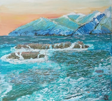 Seascape art has long stood as one of the most evocative genres, capturing both the timeless beauty and raw, untamed power of the ocean. In the hands of Angel Angelov-Esper, this tradition finds new life. From the tranquil whispers of calm waters to the thunderous roar of waves crashing against jagged cliffs, Angelov’s seascapes reflect the seas’s dynamic nature and its metaphoric depth — symbolizing human emotion, the unpredictability of life, and the mysteries that lie beyond the horizon.
